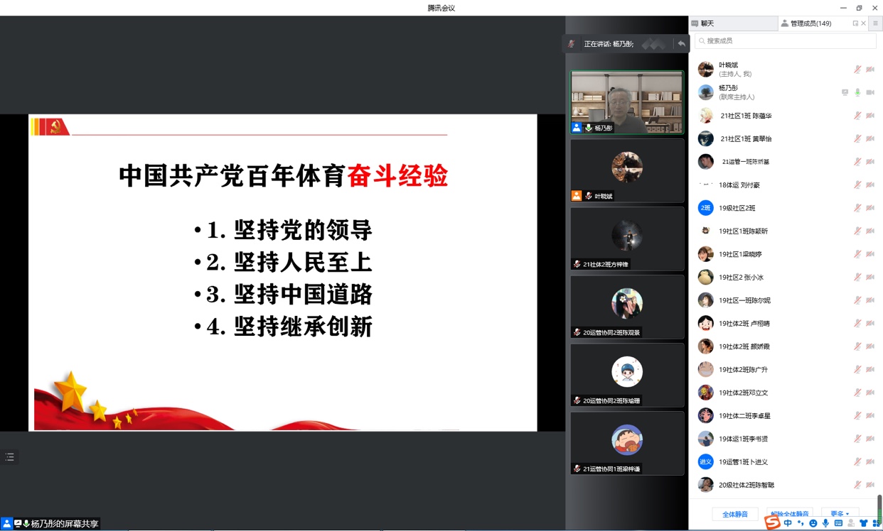 3月22日晚,我校体育学院党总支书记、院长杨乃彤教授通过线上的方式,为体育学院学生党员、入党积极分子、院团学骨干、院青马工程学员和退伍复学学生等150名学生讲授了新学期“思政第一课”。