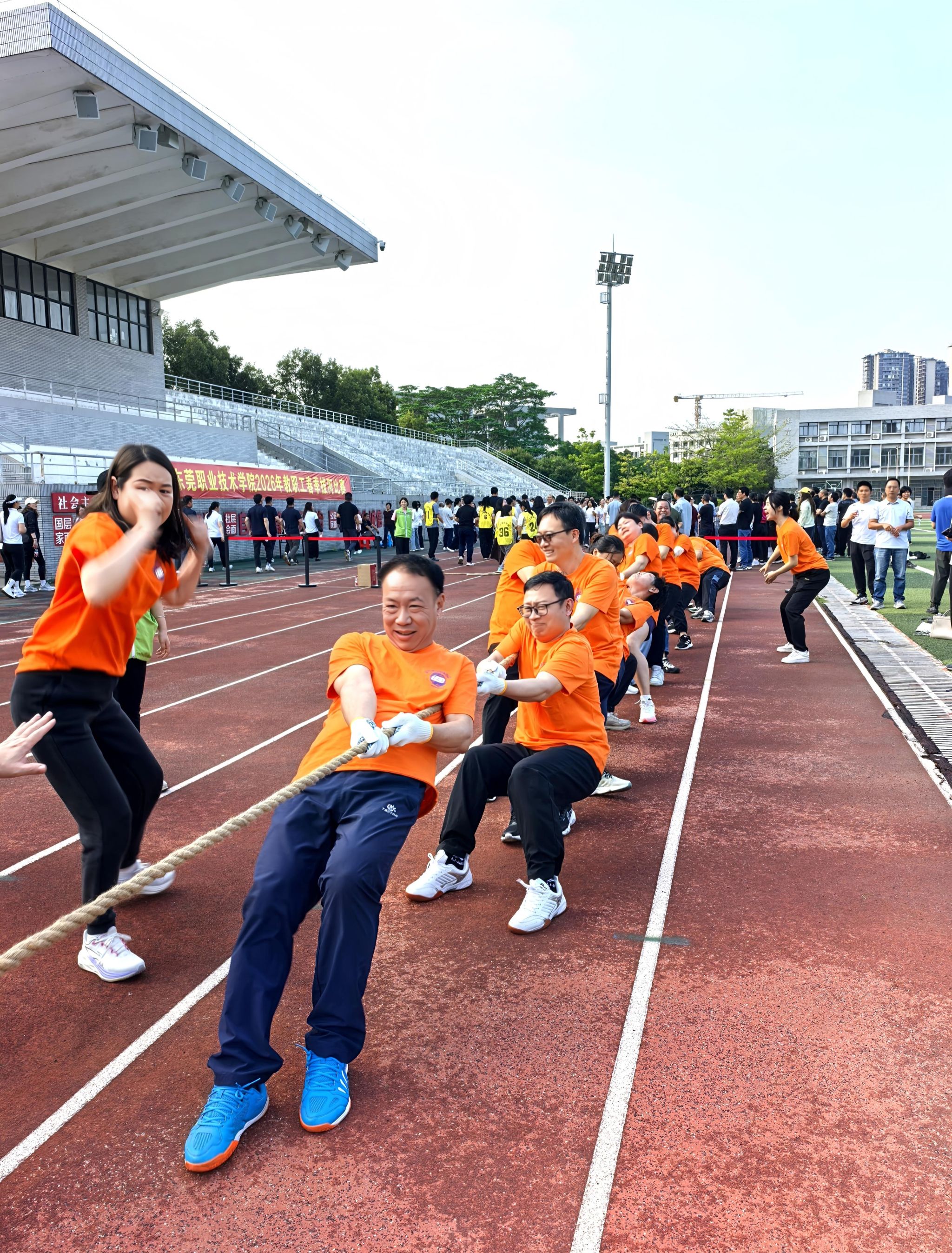 为丰富教职工文体生活,增强团队凝聚力,营造和谐向上的校园氛围,4月1日—2日下午,校工会举办教职工春季拔河比赛。全校15个分工会共14支队伍参赛,参赛运动员与啦啦队齐聚赛场,以绳凝心、以赛聚力,展现出团结协作、奋勇拼搏的精神风貌。