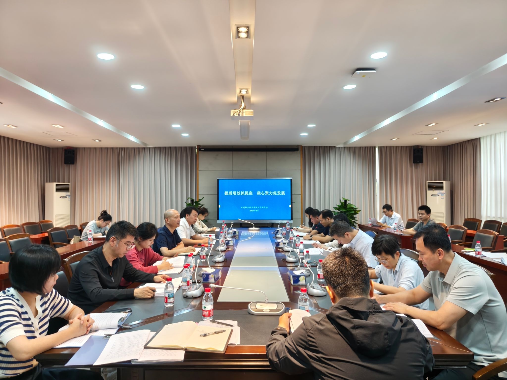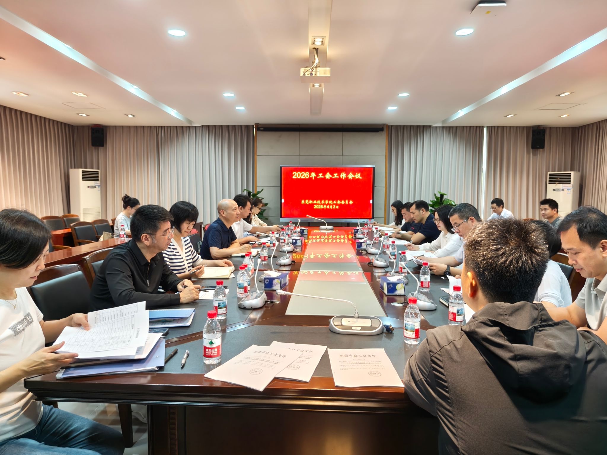 4月3日上午,我校在立德楼B314会议室召开2026年工会工作会议。会议由校工会负责人余忠信同志主持,新一届分工会主席、委员参加此次会议。