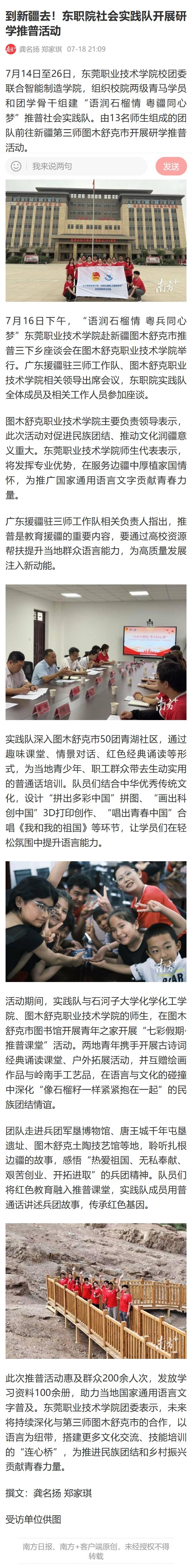 【南方+】到新疆去!东职院社会实践队开展研学推普活动