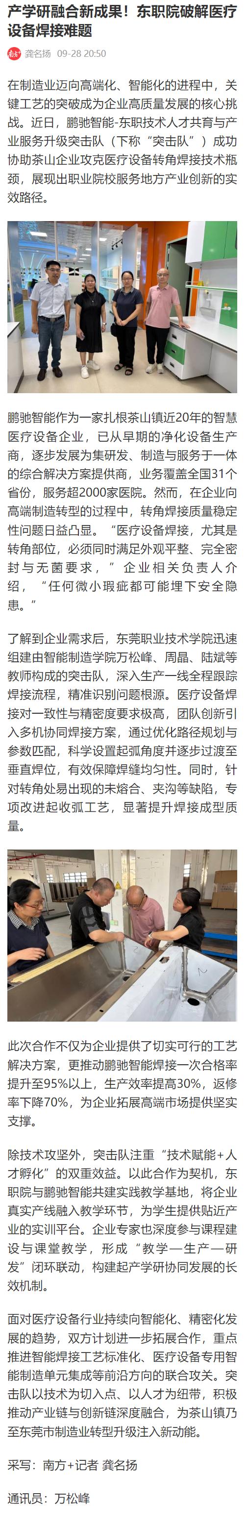 【南方+】产学研融合新成果!东职院破解医疗设备焊接难题