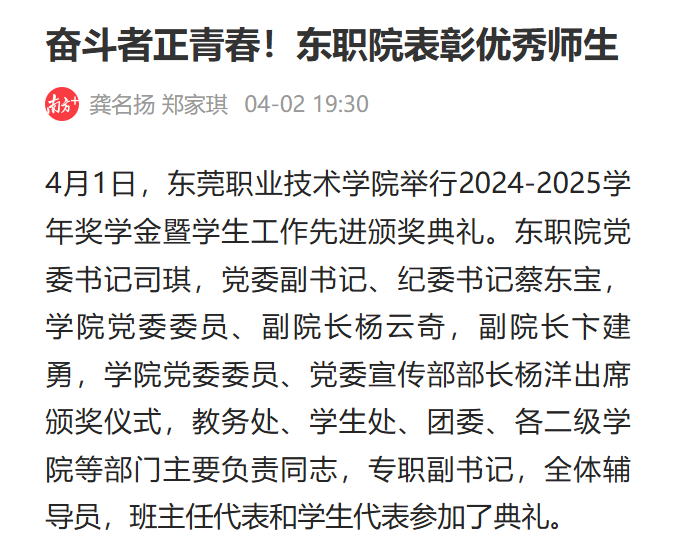 【南方+】奋斗者正青春!东职院表彰优秀师生